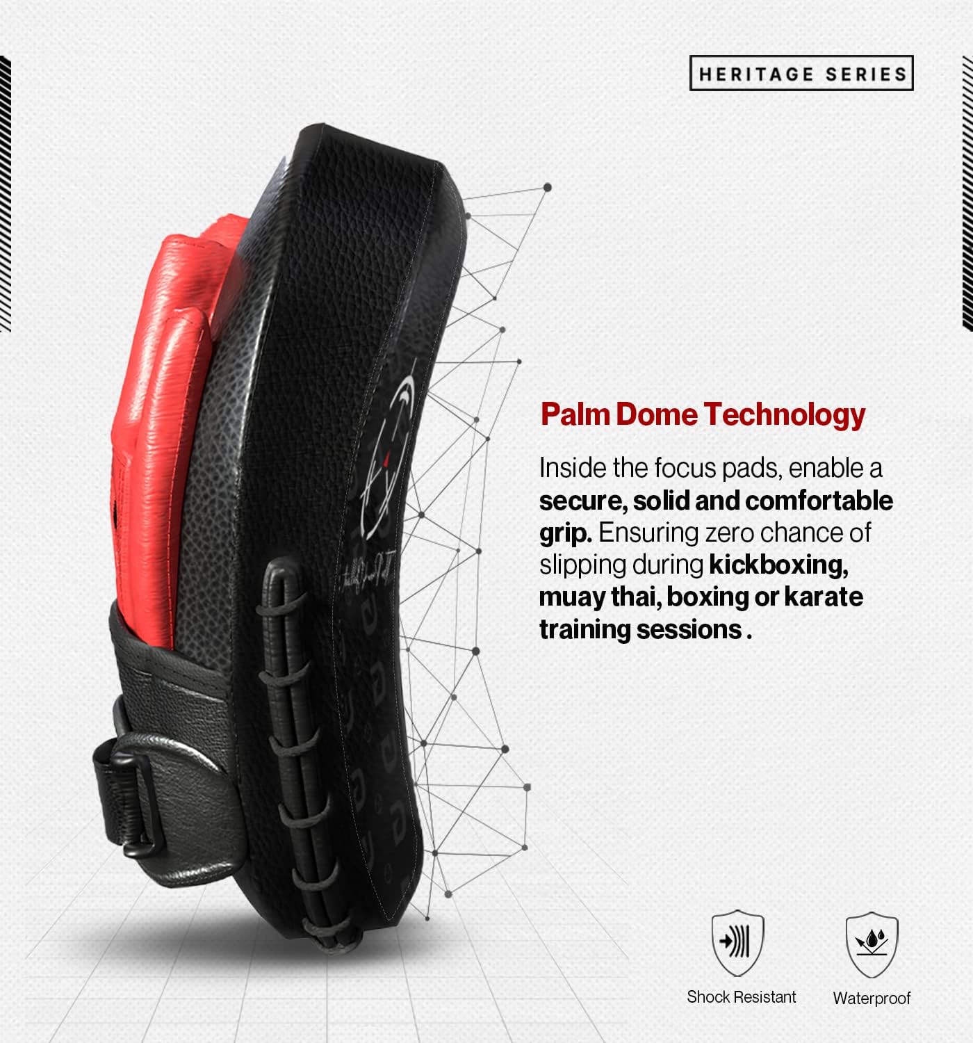 - Focus dome technology: Enables a firm grip when worn and zero chance of slipping when struck. The dome grip offers a secure hold when catching the nastiest of blows and kicks during Kickboxing, Boxing, or karate training sessions.