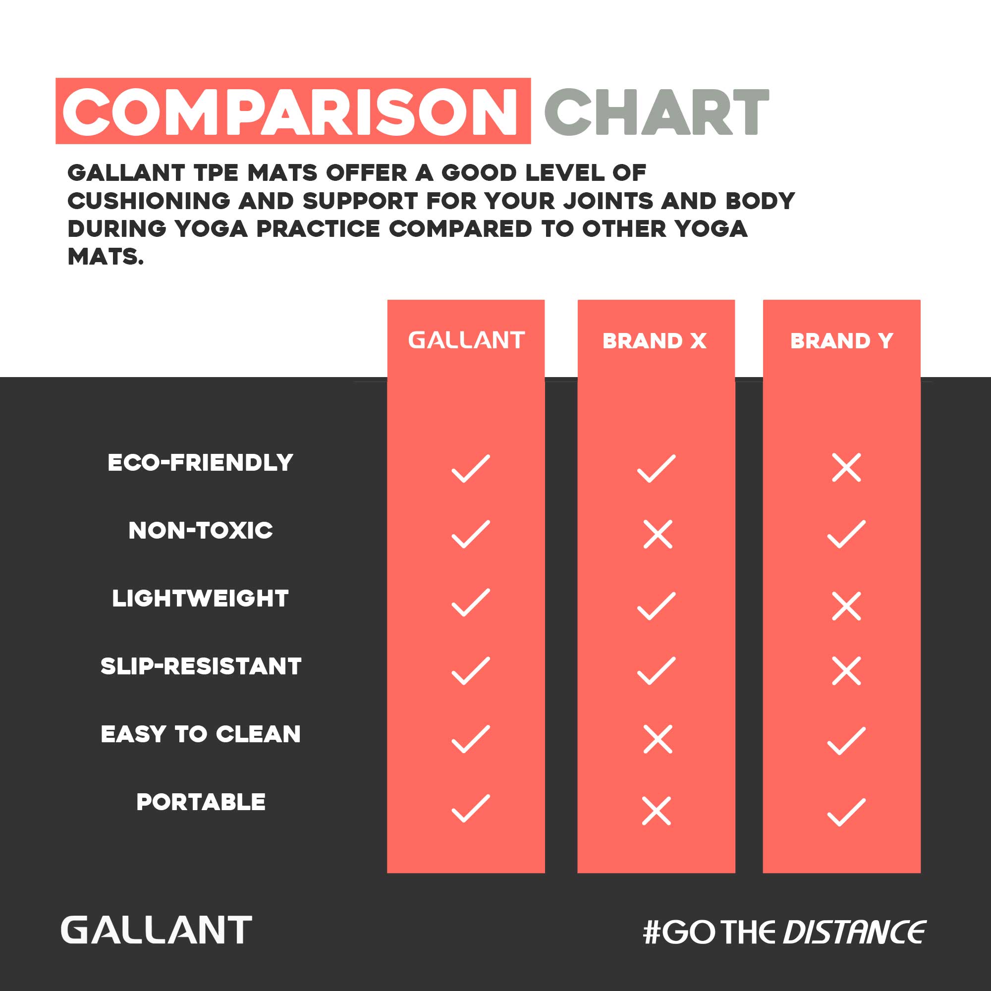 Yoga Mat Eco-Friendly TPE - Gallant Sports Yoga Mat Eco-Friendly TPE helps you build power, strength, and muscle endurance with high-tech training equipment. Is suitable for both indoor and outdoor exercises. You can use it for yoga, Pilates, core abdominal exercises, gymnastic workouts, and home and gym fitness Made From premium and eco-friendly TPE materials. It does not have any latex, PVC, or harmful chemicals. Start leading a healthy life with our exercise mat.